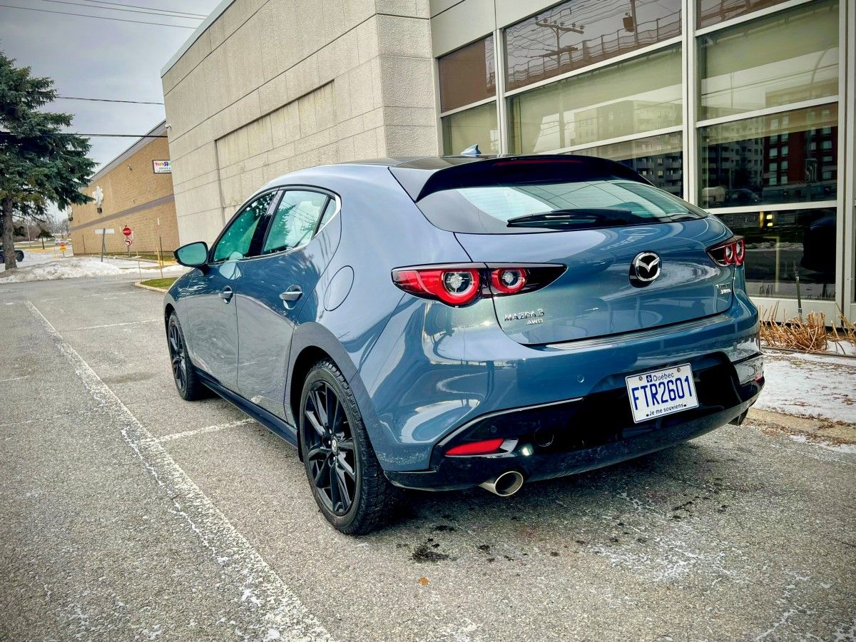 Sous le capot, les versions de base sont animées par le 2,5 litres atmosphérique de 186 chevaux qui propose des performances dans la moyenne du segment. Si vous optez pour le même groupe motopropulseur qui est sous le capot de notre Sport GT, vous retrouverez alors un moteur 2,5 litres turbo qui n’est disponible qu’avec une transmission automatique à six rapports et une traction intégrale. Cette option transforme littéralement le caractère de la voiture. Avec 250 chevaux et un couple de 320 lb-pi, le Mazda 3 devient alors l’une des compactes les plus nerveuses de sa catégorie.